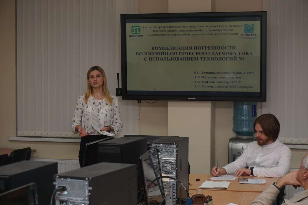 - ДИПЛОМ ЗА ЛУЧШИЙ ДОКЛАД СЕКЦИИ: Майзель А.В., Медведев А.В., Мокеев А.С., Темкина В. С. Компенсация погрешности волоконно-оптического датчика тока с использованием технологий NI. Научный руководитель — доц. А. В. Медведев.