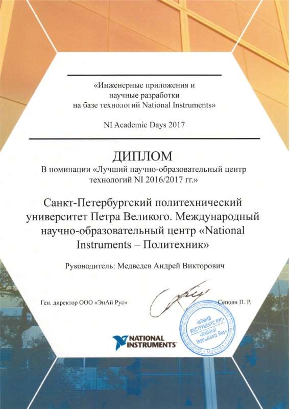 Приятно отметить, что МНОЦ «National instruments – Политехник» во второй раз был признан «Лучшим образовательным центром технологий NI 2016/2017 гг.». Первую подобную награду Центр получил по итогам 2013-2014 гг., спустя всего четыре года после своего фактического образования.